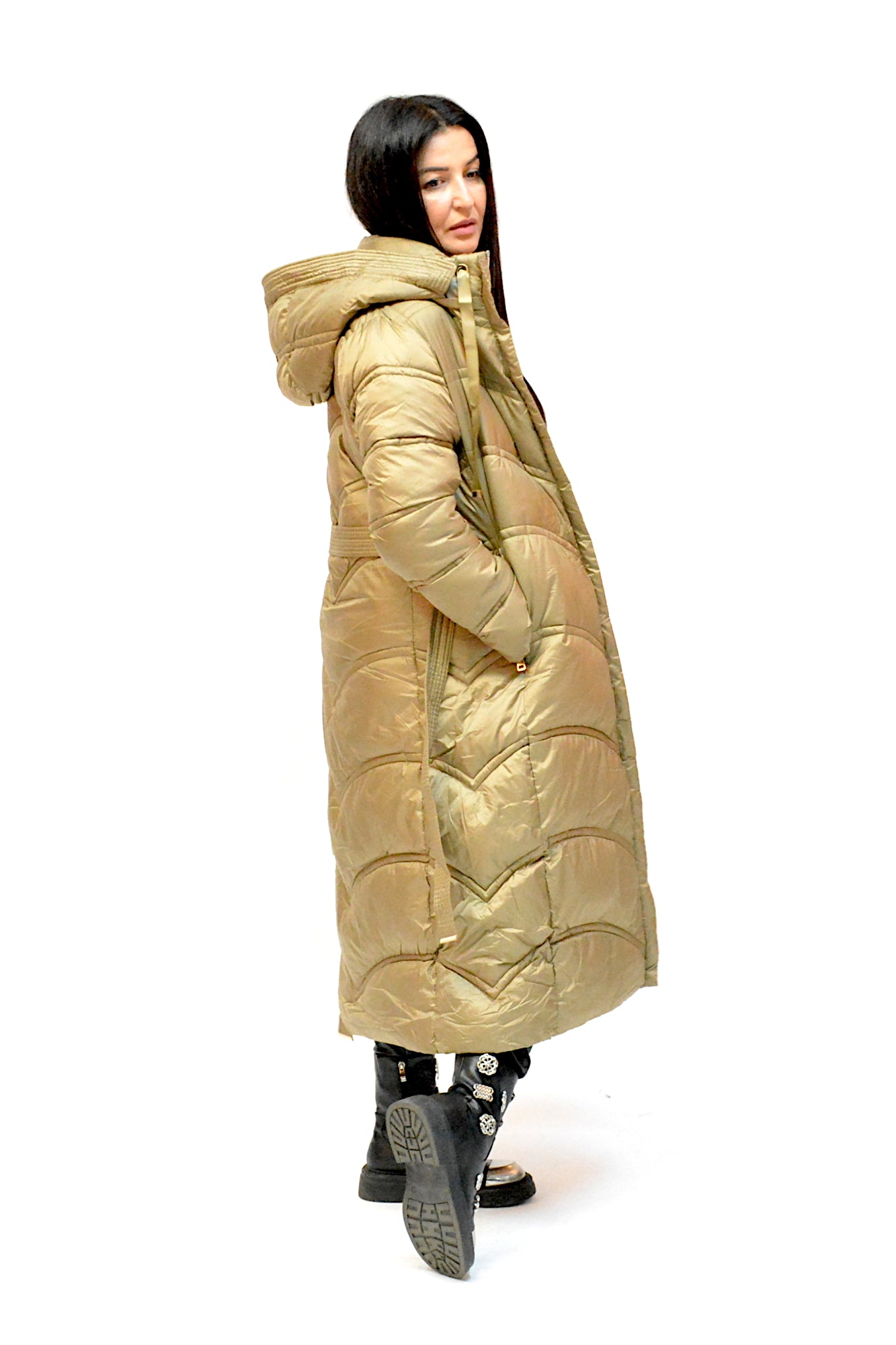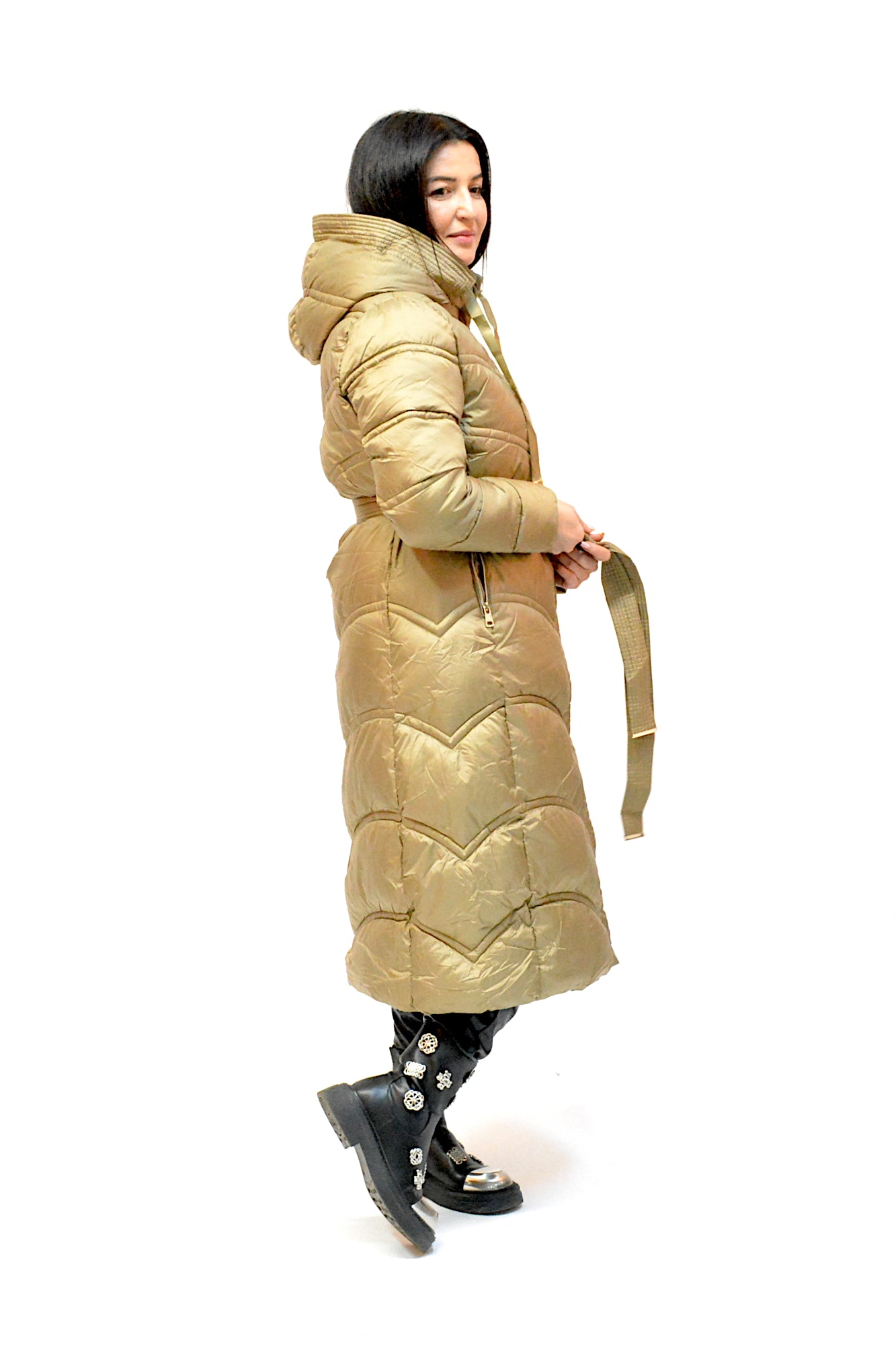 Geaca de iarna cu gluga ,sistem de inchidere cu fermoar si cu cordon in talie asa incat sa scoata talia in evidenta,umpluta cu vatelina perfecta pentru zilele friguroase de iarna.