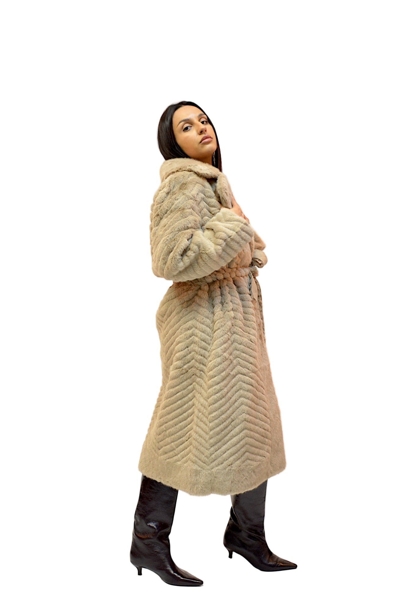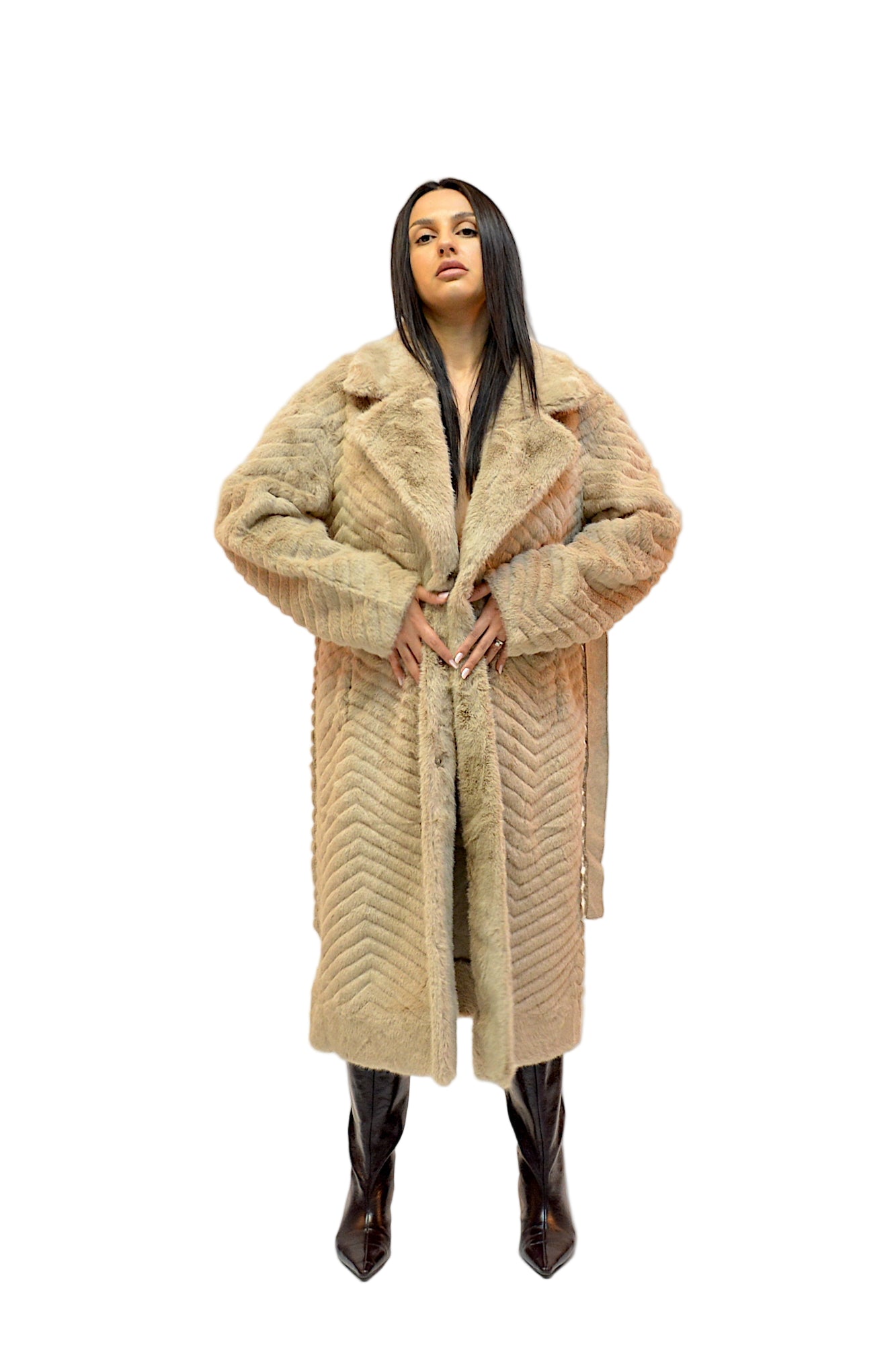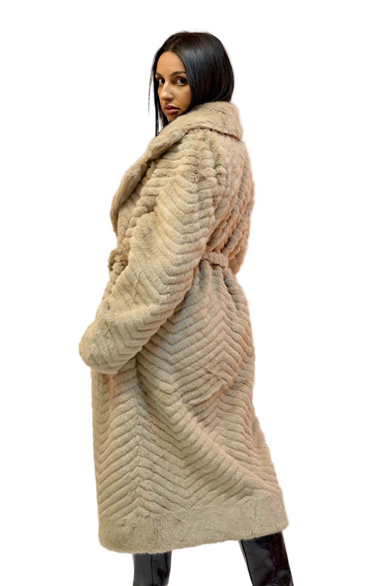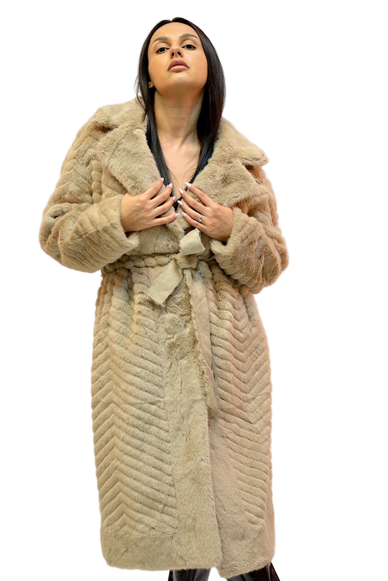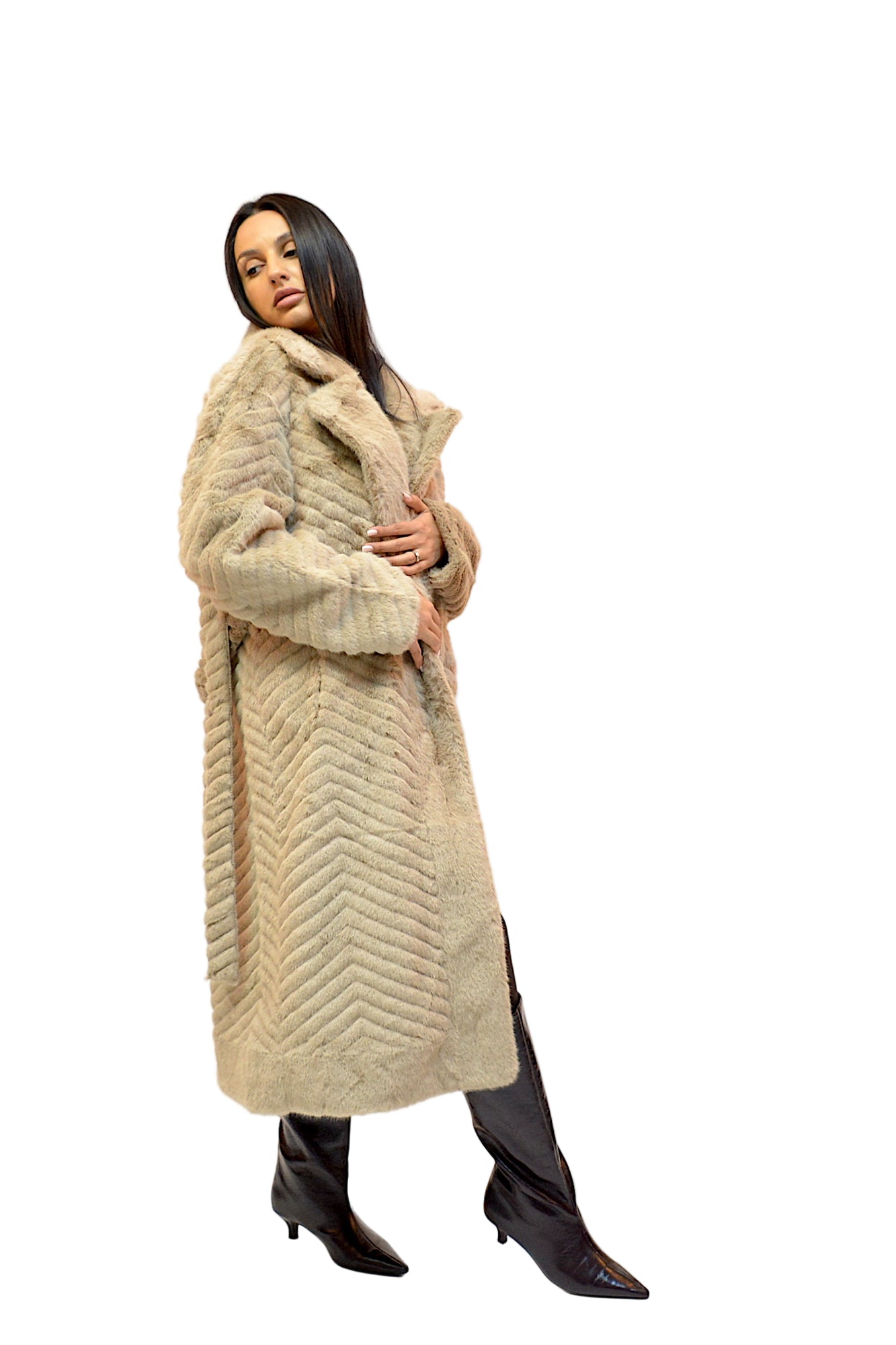 Jacheta din blana ecologica,foarte fina la atingere,buzunare laterale,maneci lungi,cordon in talie,practica si extrem de confortabila in sezonul rece.