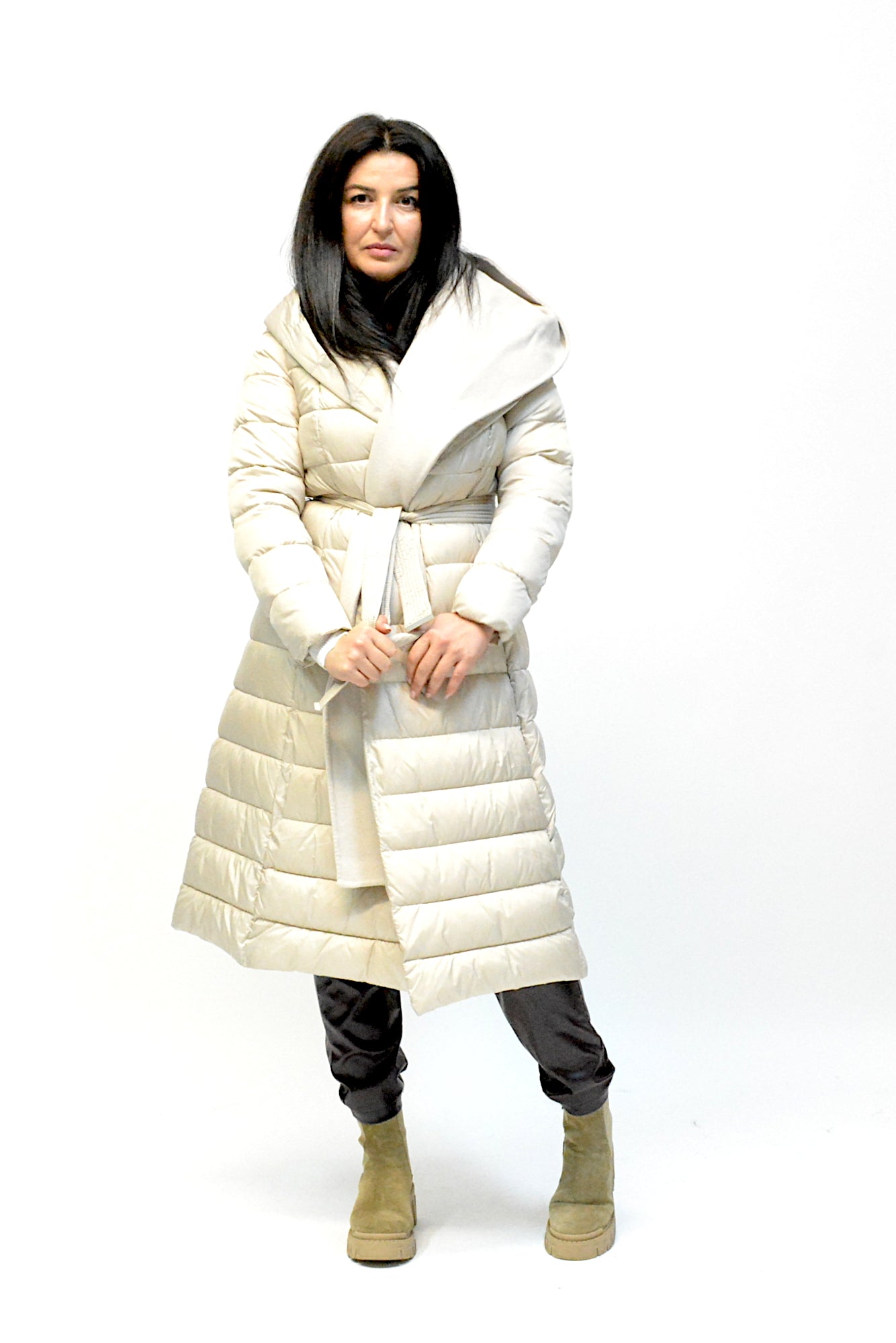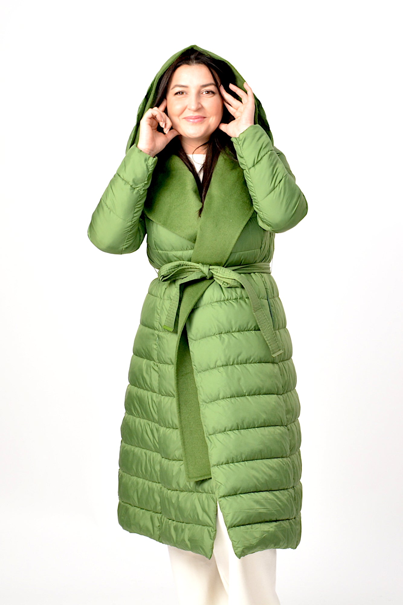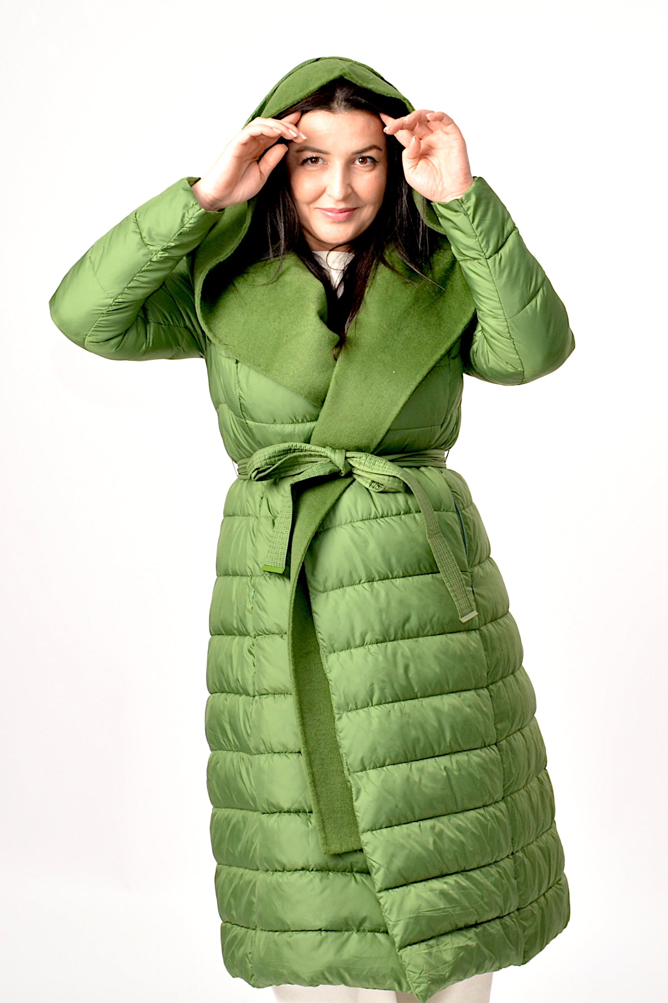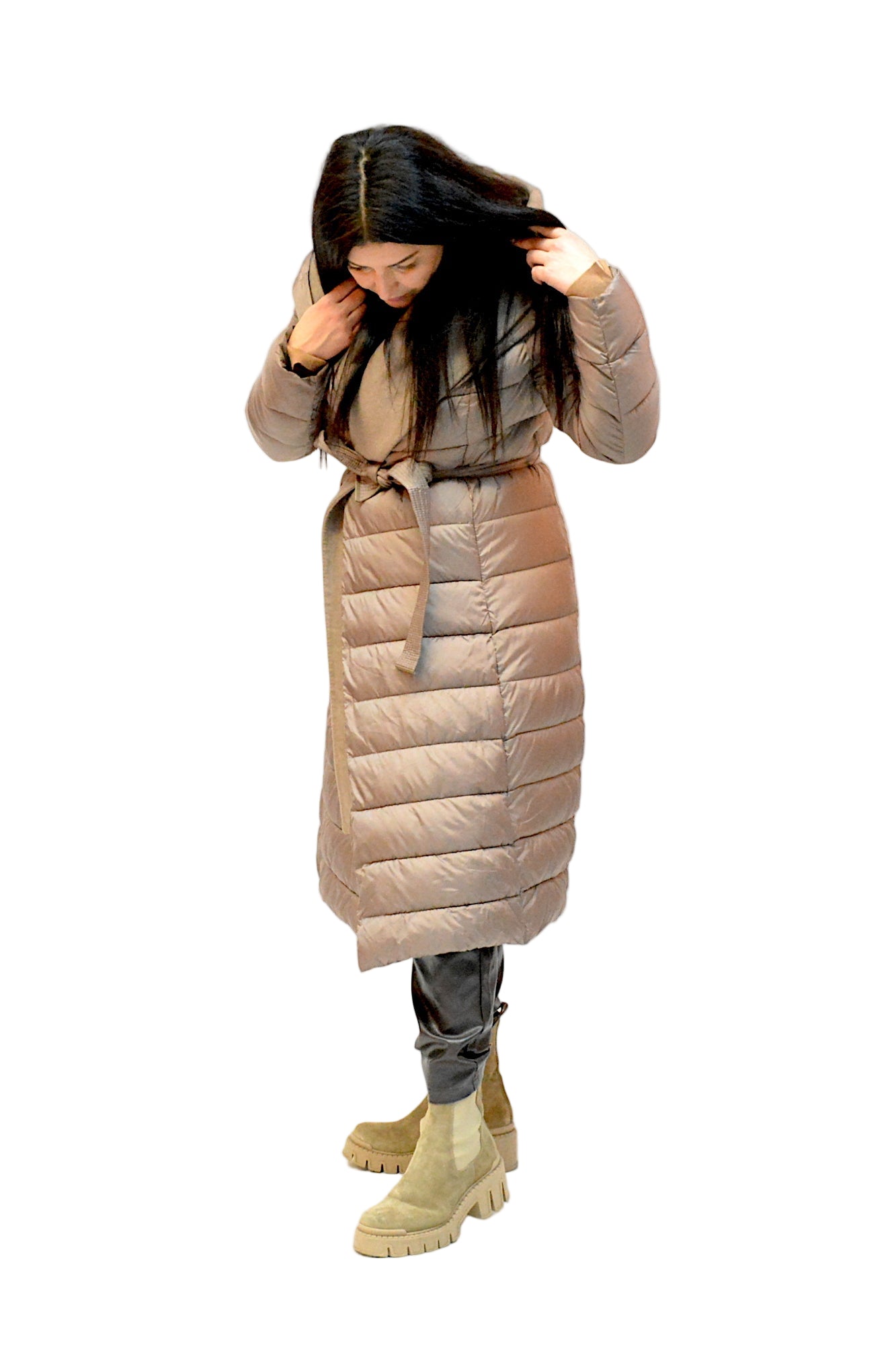 Geaca de iarna cu gluga,sistem de inchidere cu cordon in talie asa incat sa scoata talia in evidenta,umpluta cu vatelina perfecta pentru zilele friguroase de iarna.