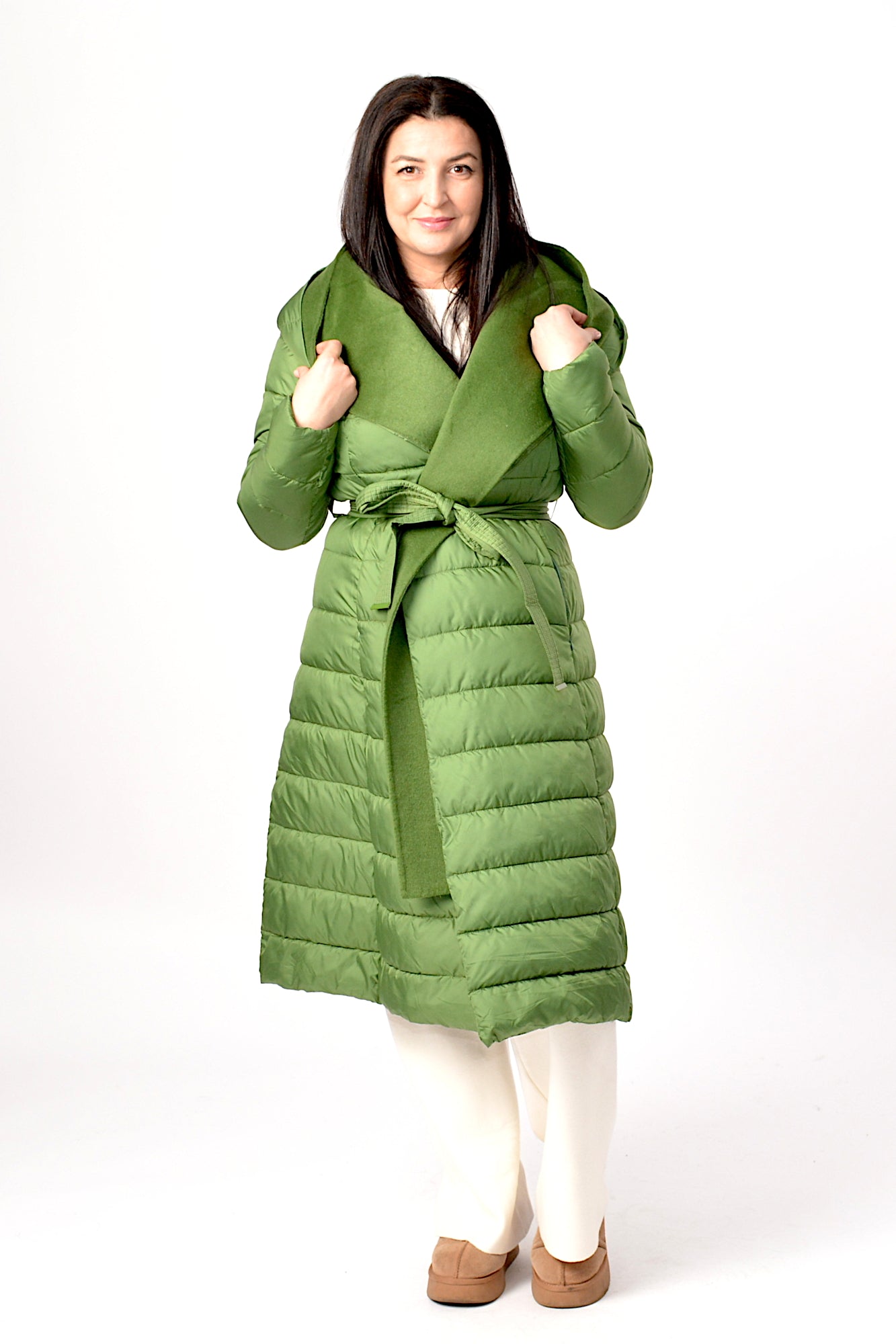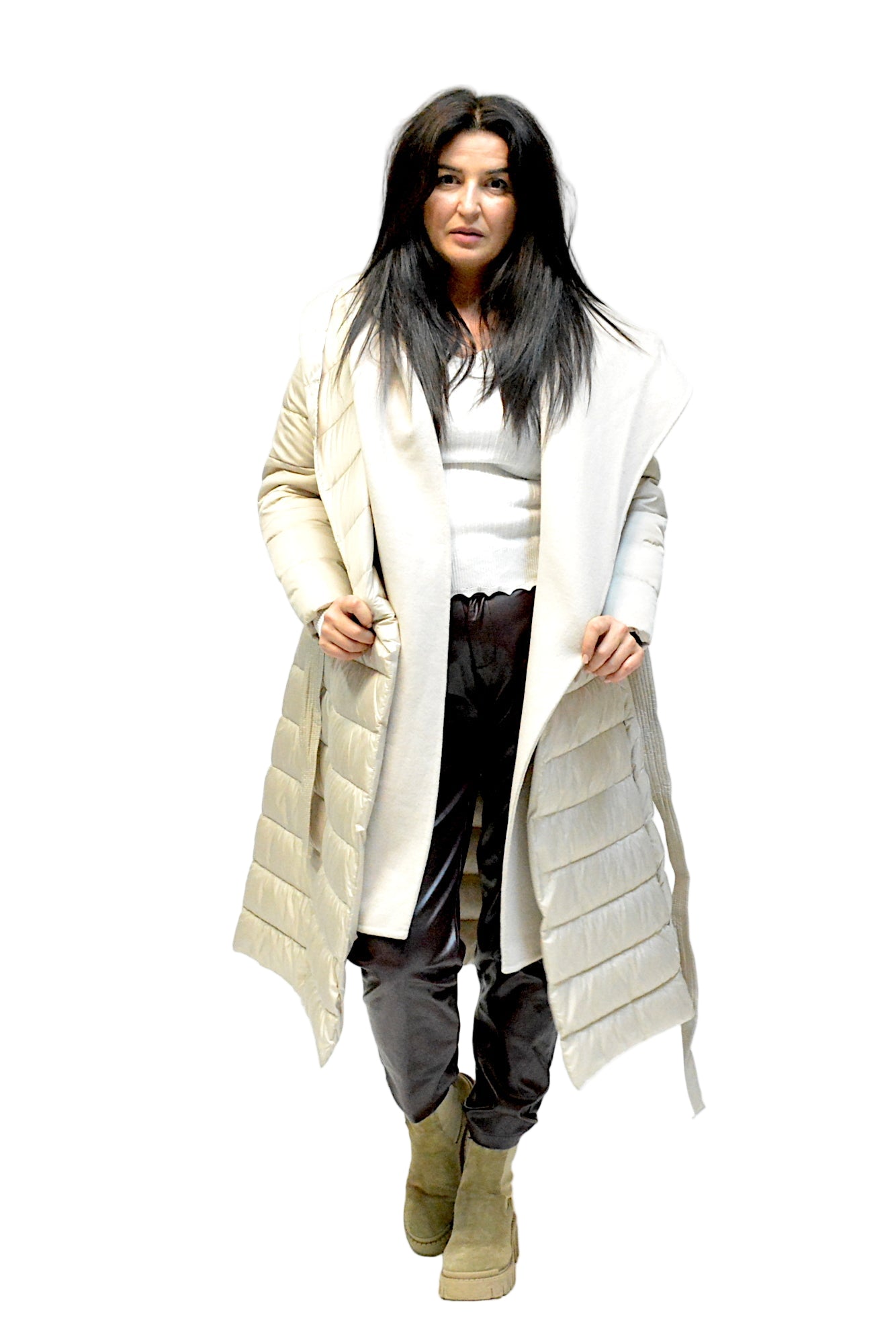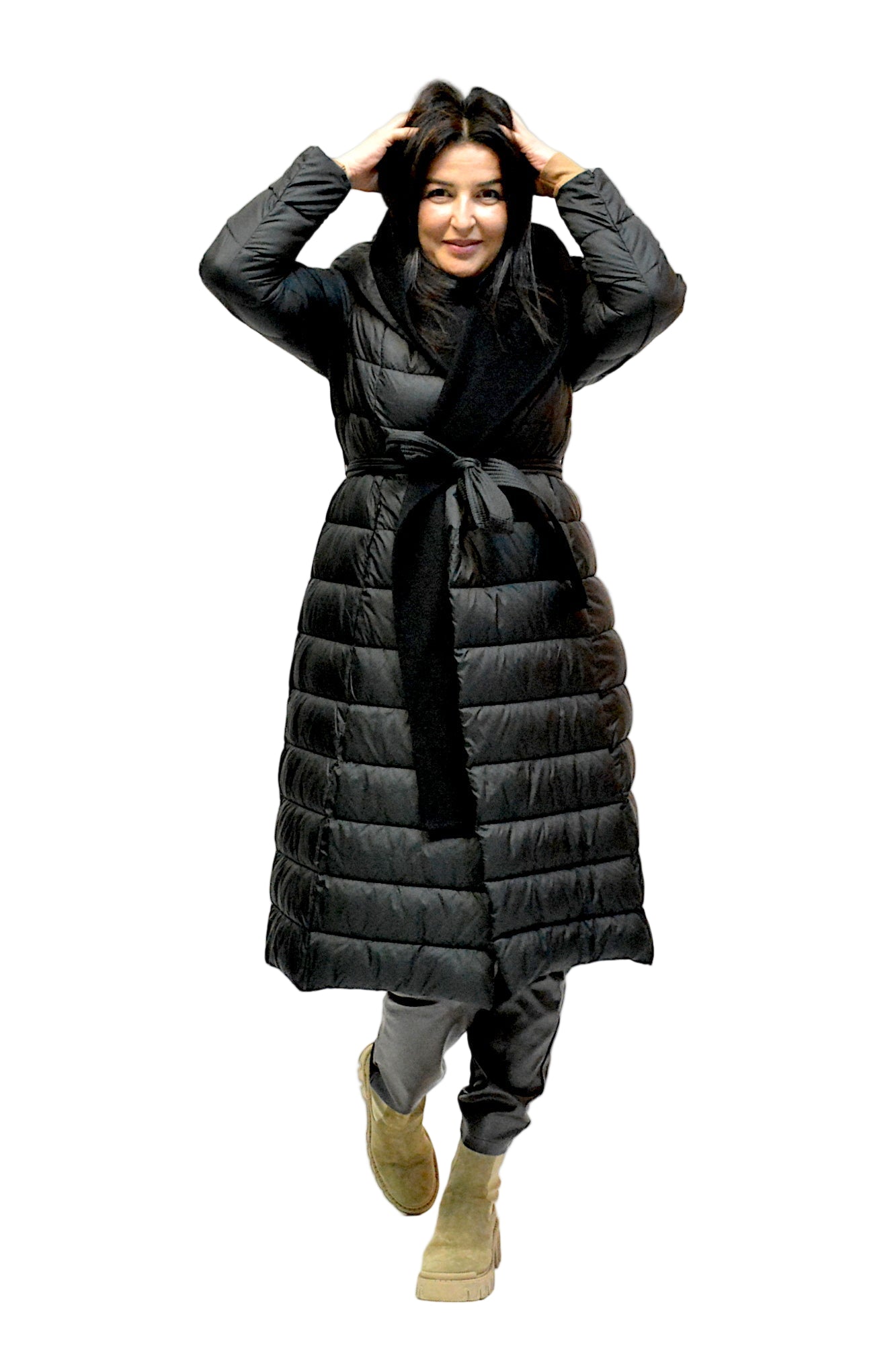 Geaca de iarna cu gluga,sistem de inchidere cu cordon in talie asa incat sa scoata talia in evidenta,umpluta cu vatelina perfecta pentru zilele friguroase de iarna.