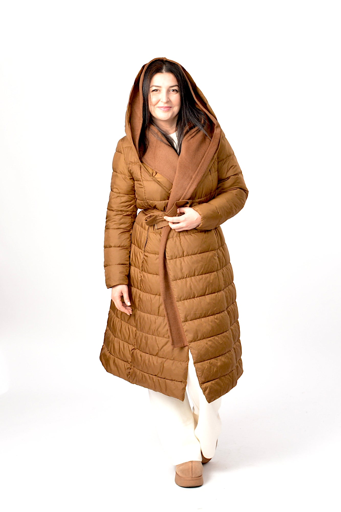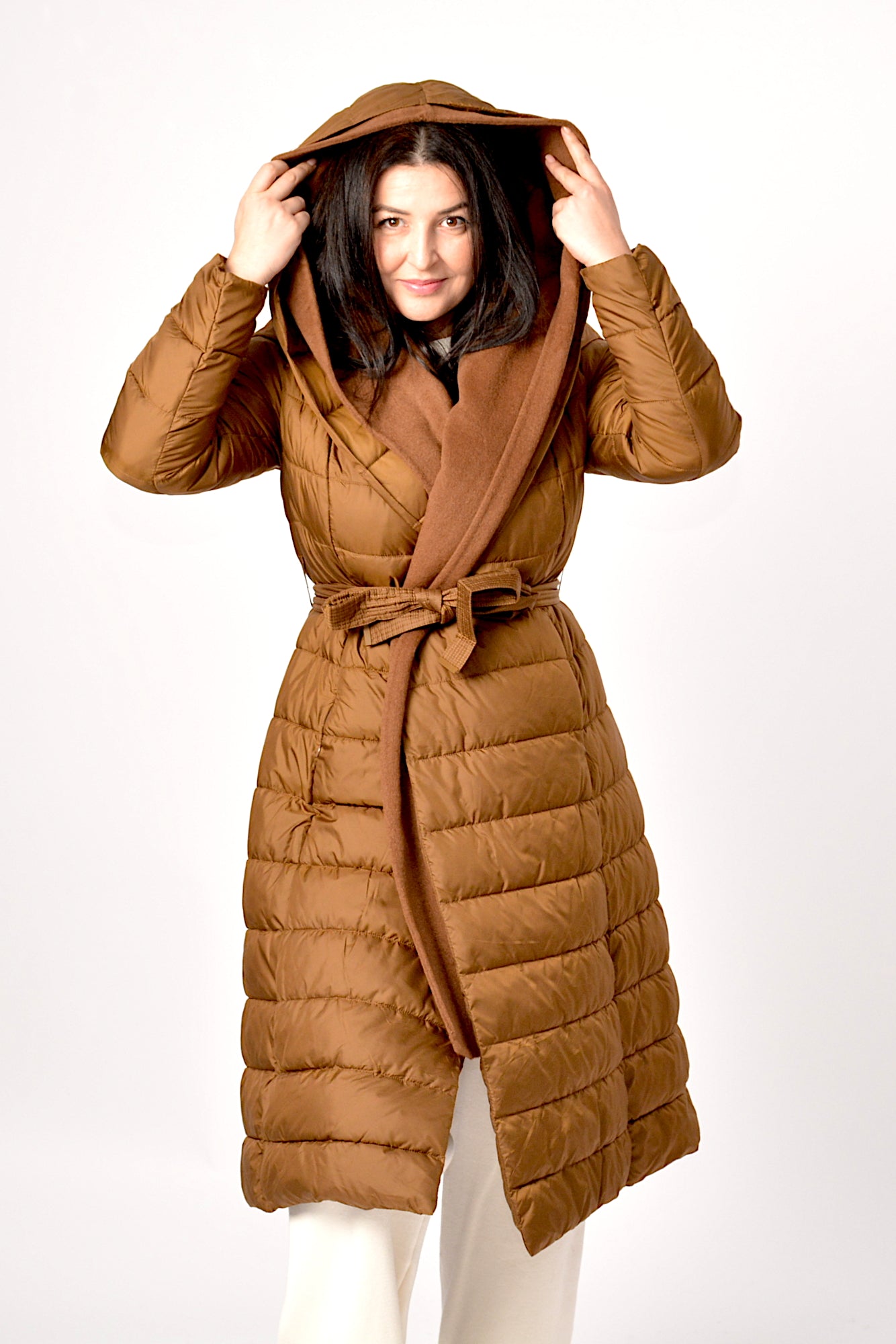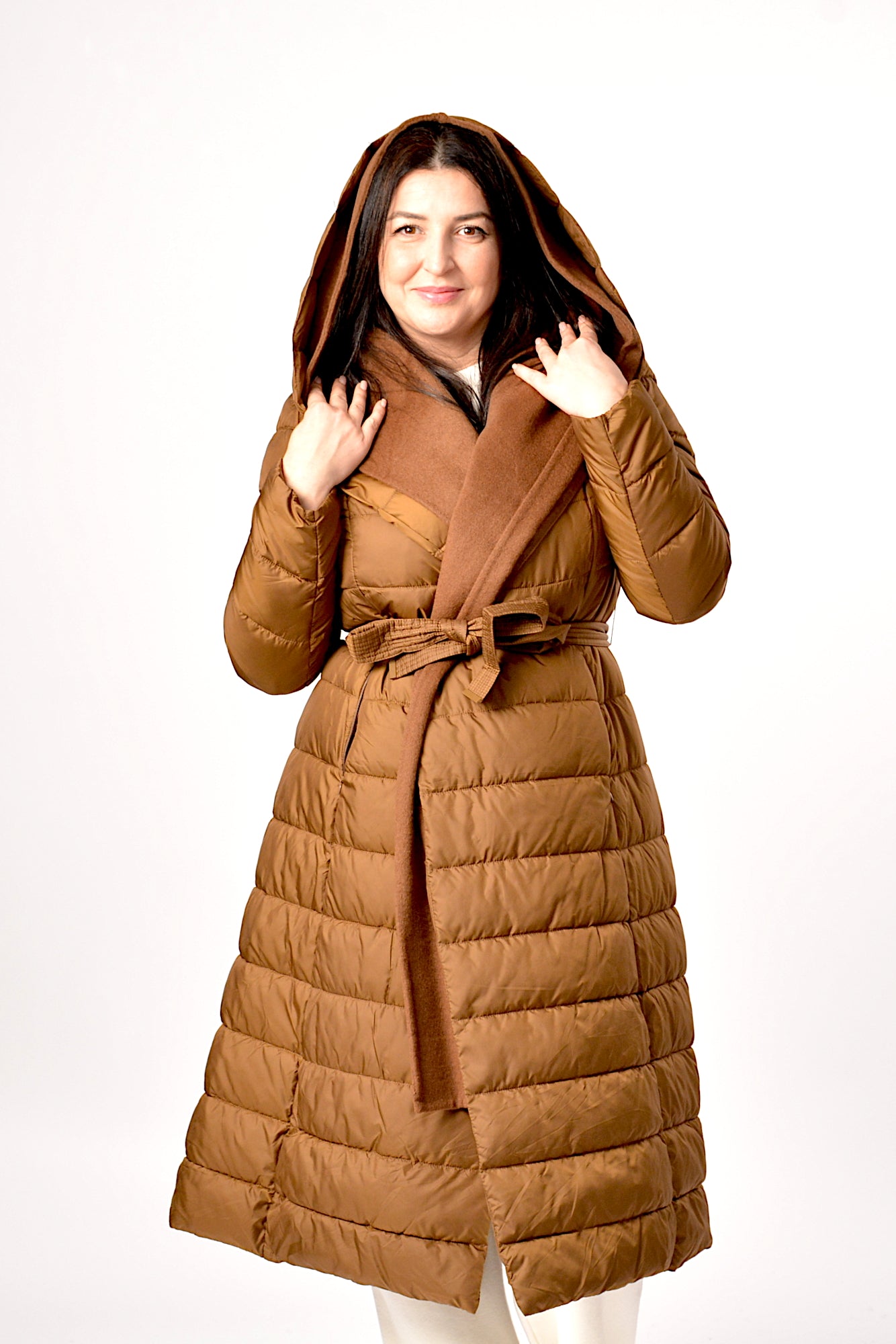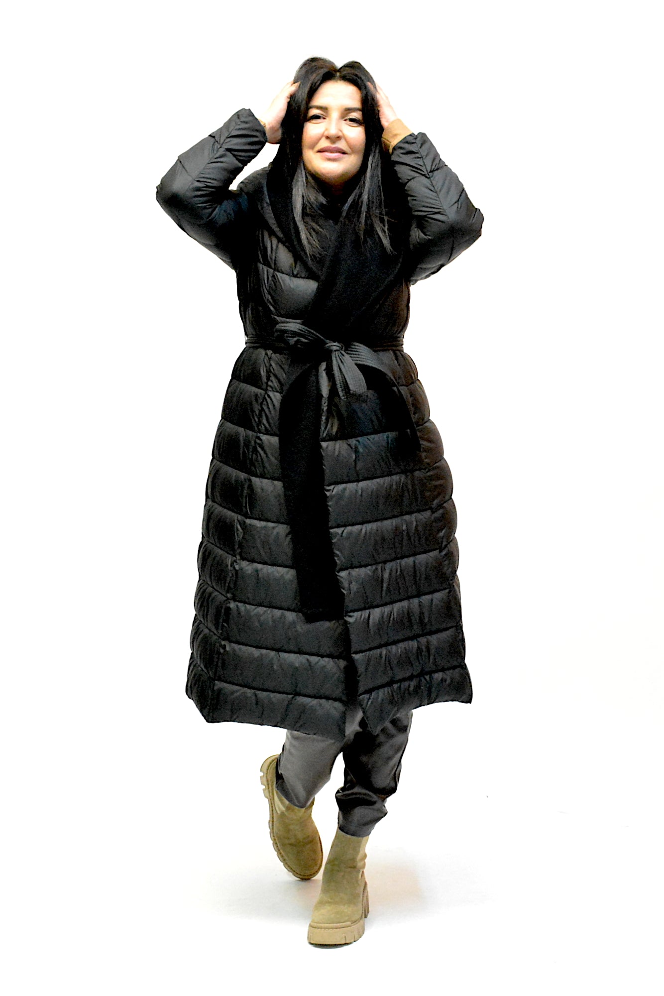 Geaca de iarna cu gluga,sistem de inchidere cu cordon in talie asa incat sa scoata talia in evidenta,umpluta cu vatelina perfecta pentru zilele friguroase de iarna.