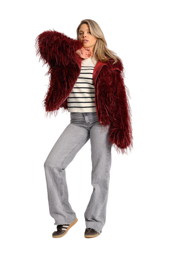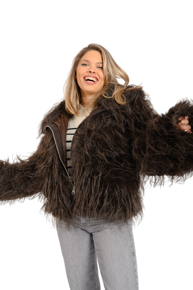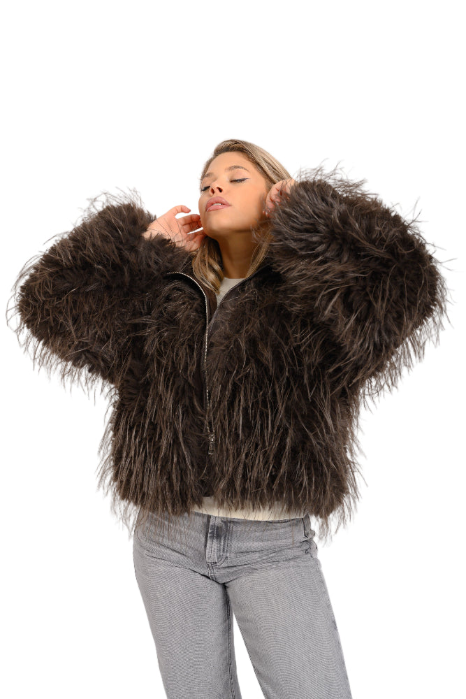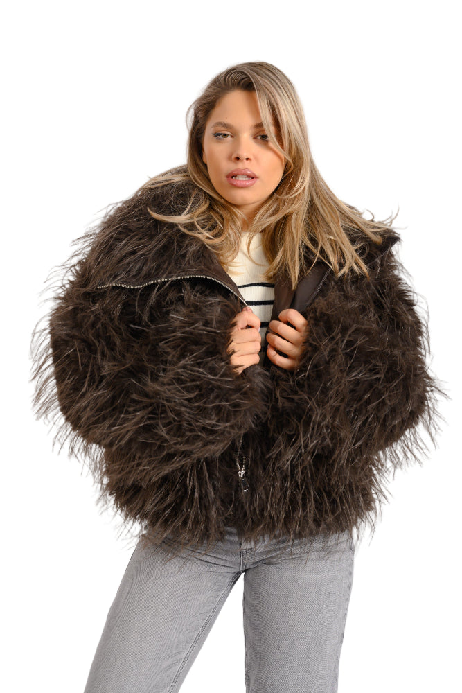 Blăniță ecologică bej, cu textură pufoasă și croi scurt, ideală pentru un look modern și sofisticat,sistem de inchidere cu fermoar.O piesă statement care adaugă volum și stil oricărei ținute de toamnă-iarnă.