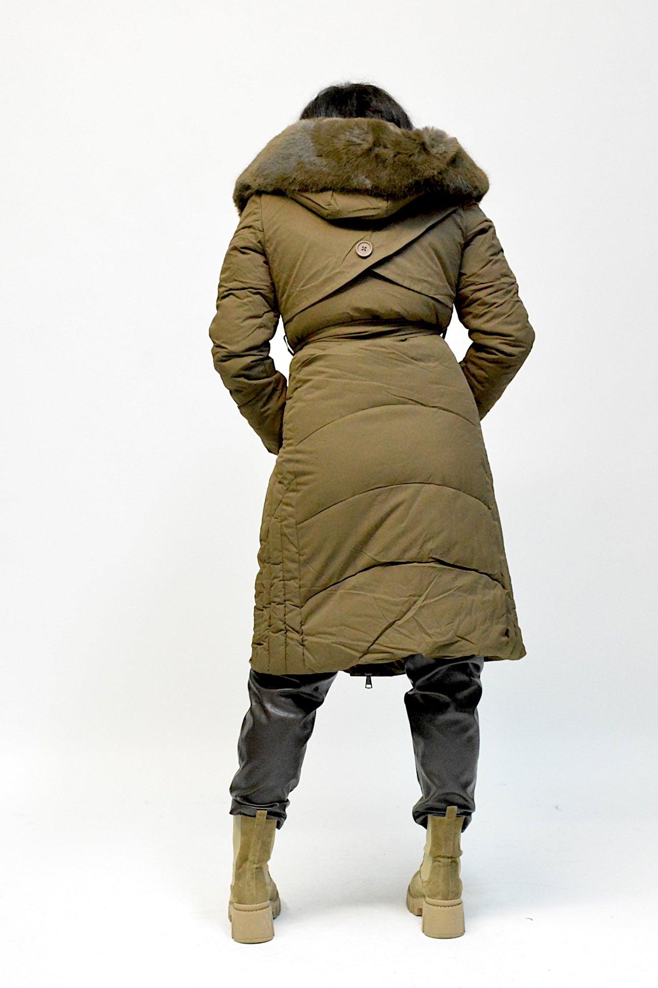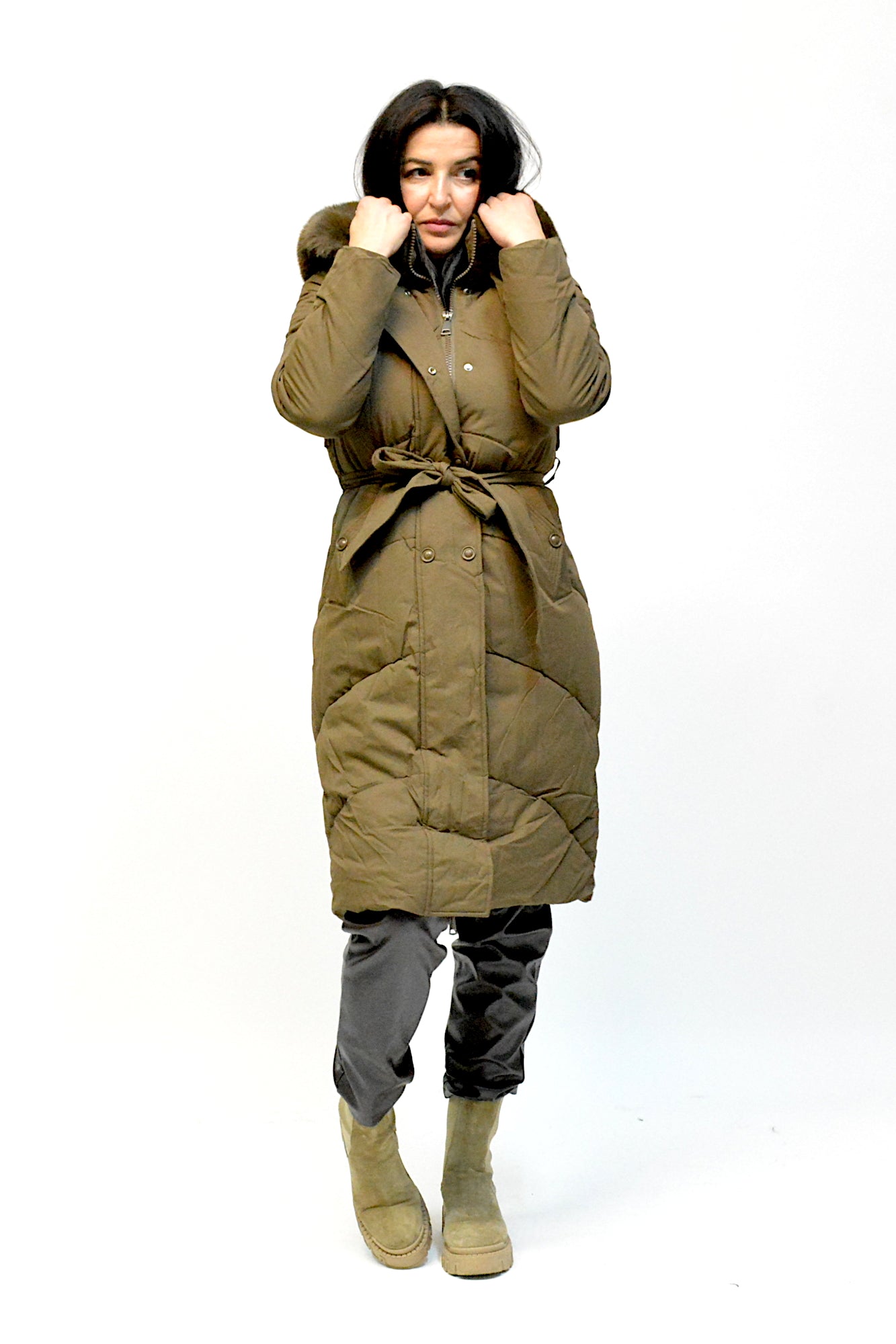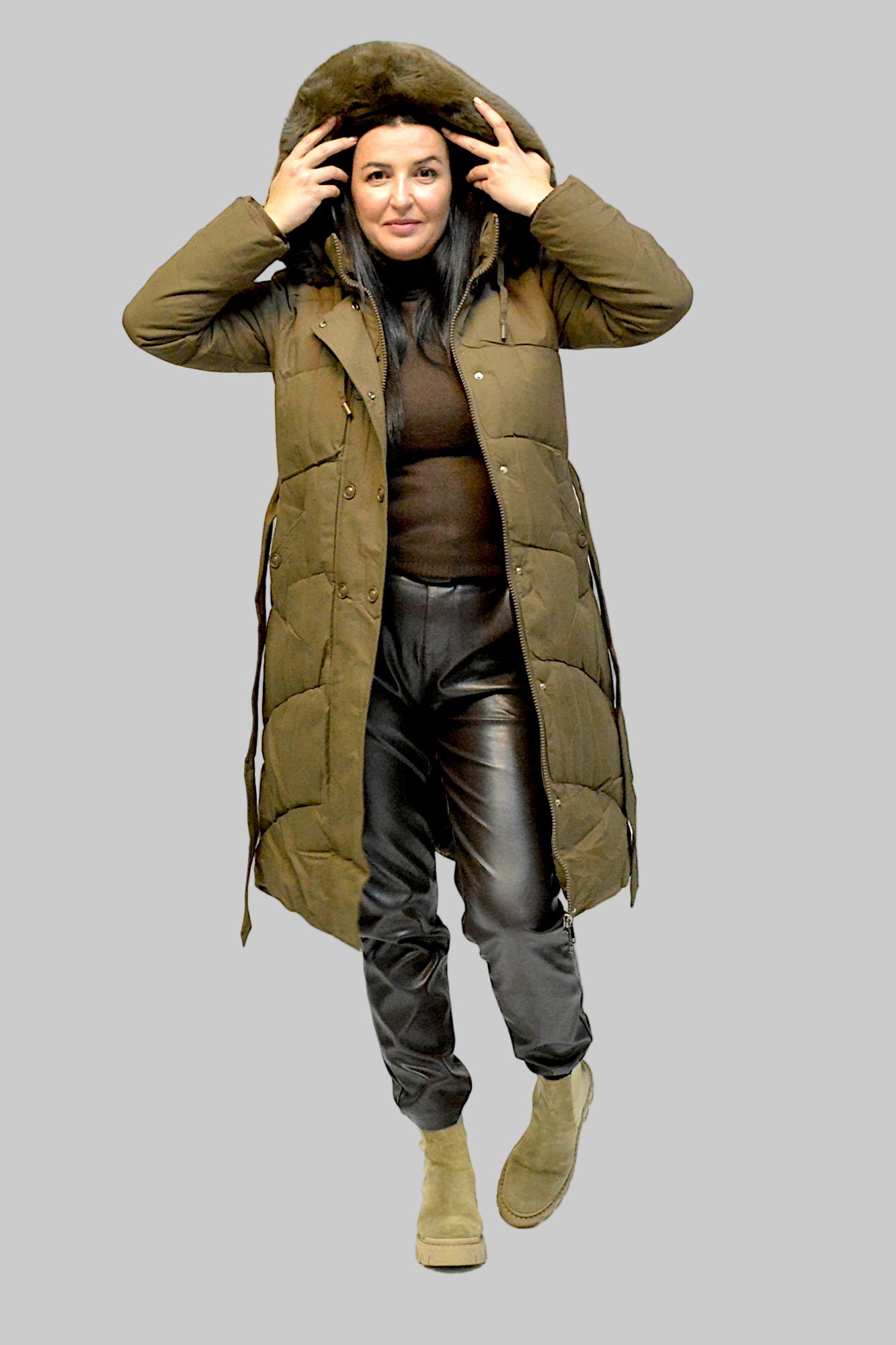 Geaca de iarna cu gluga si blanita ecologica,sistem de inchidere cu fermoar si cu snur in talie reglabila asa incat sa scoata talia in evidenta,umpluta cu vatelina perfecta pentru zilele friguroase de iarna.