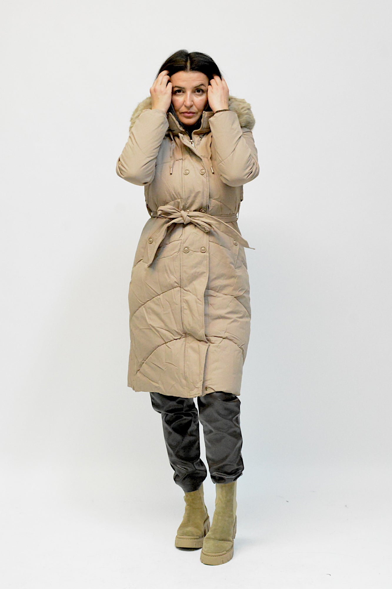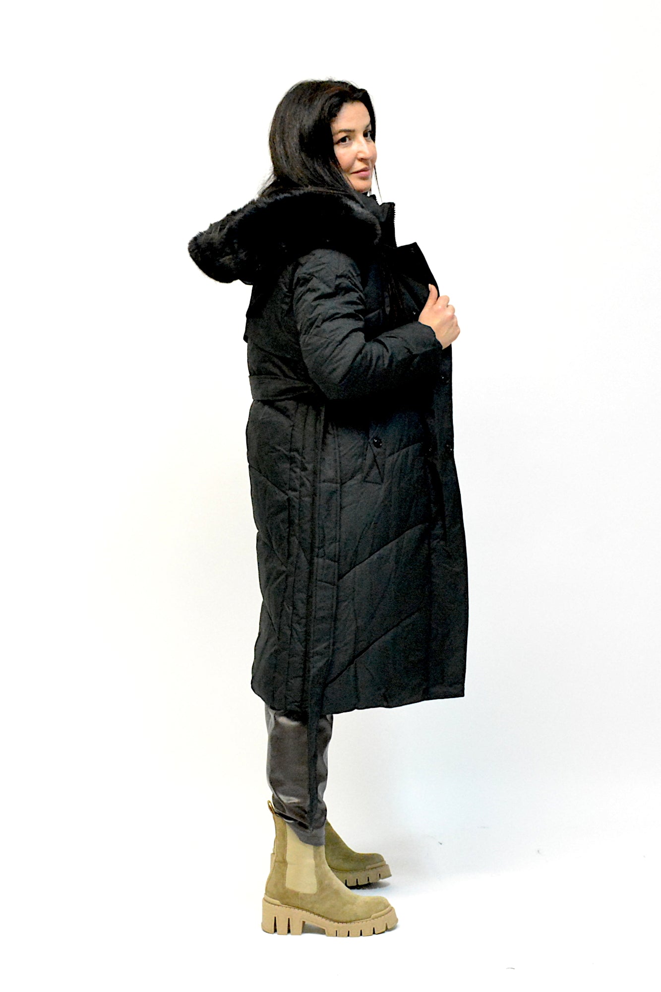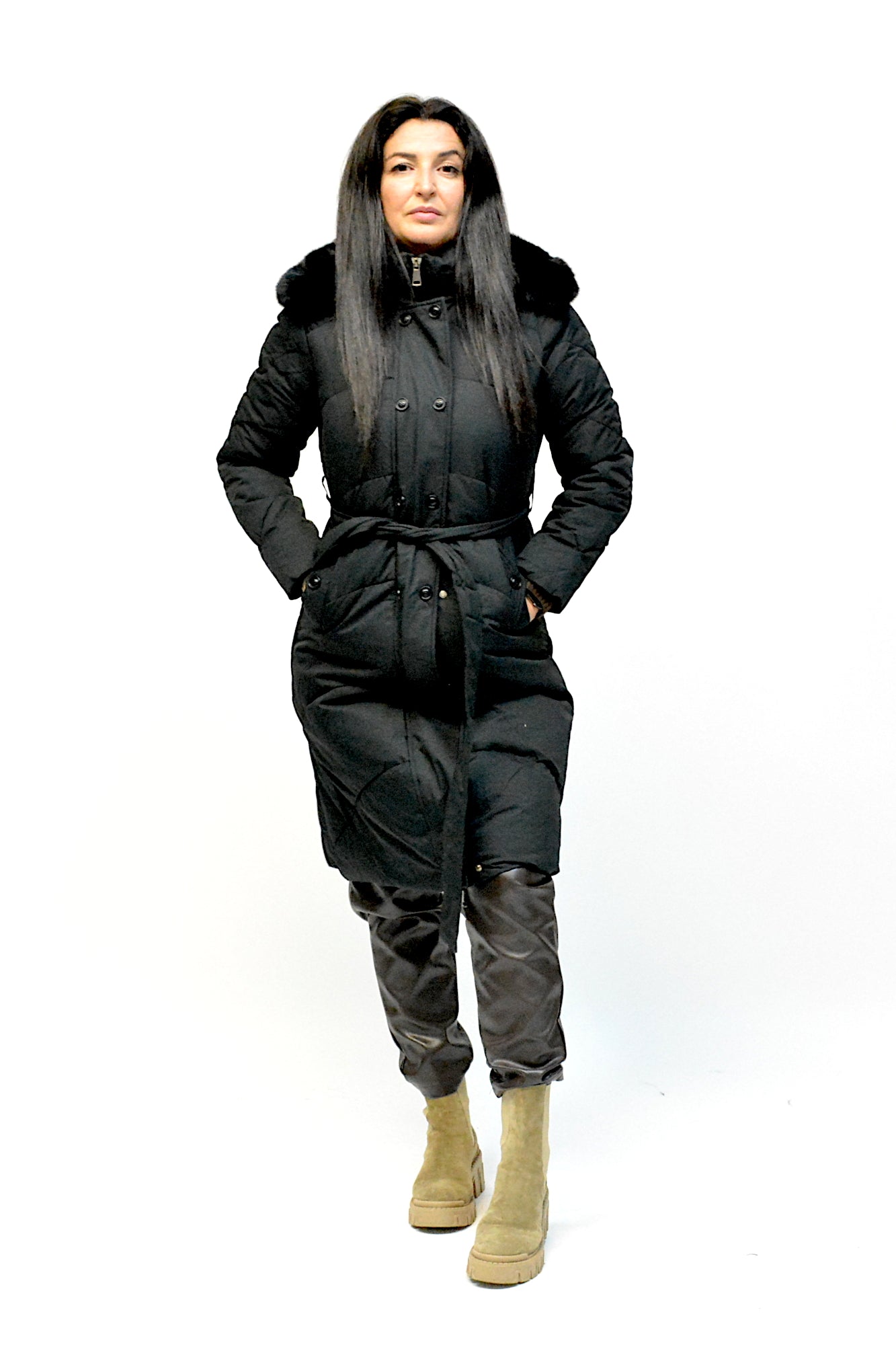 Geaca de iarna cu gluga si blanita ecologica,sistem de inchidere cu fermoar si cu snur in talie reglabila asa incat sa scoata talia in evidenta,umpluta cu vatelina perfecta pentru zilele friguroase de iarna.