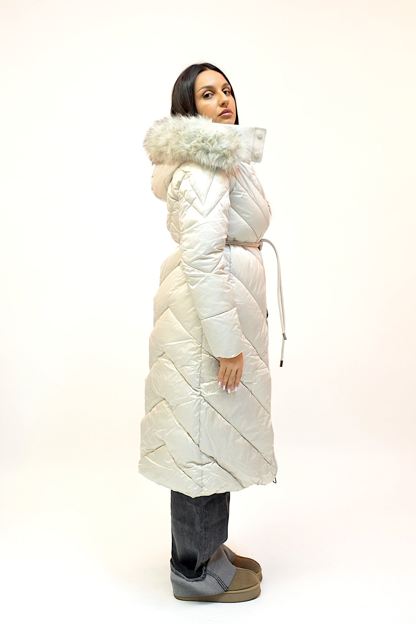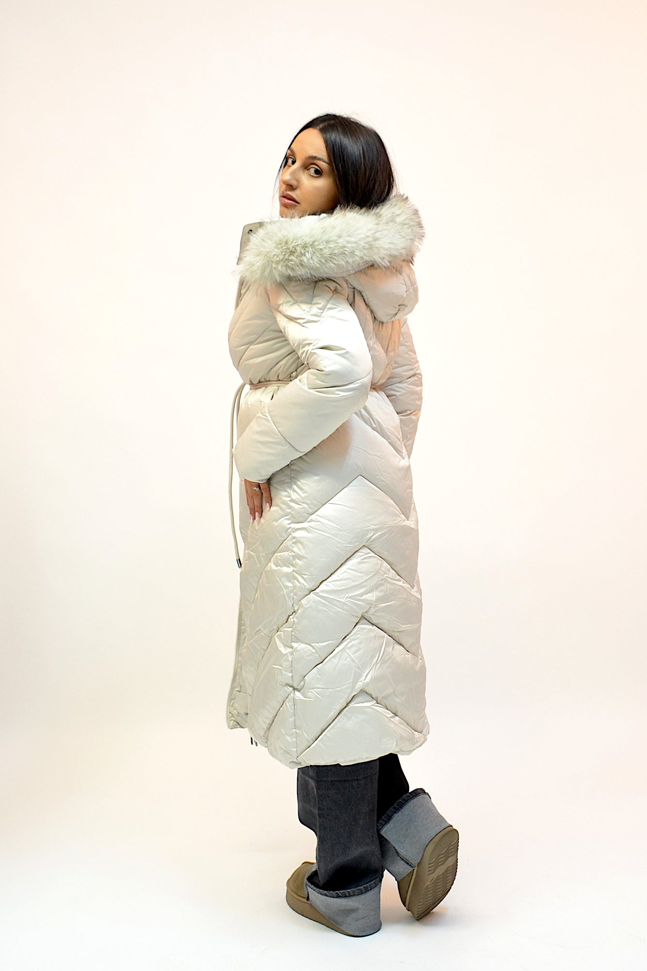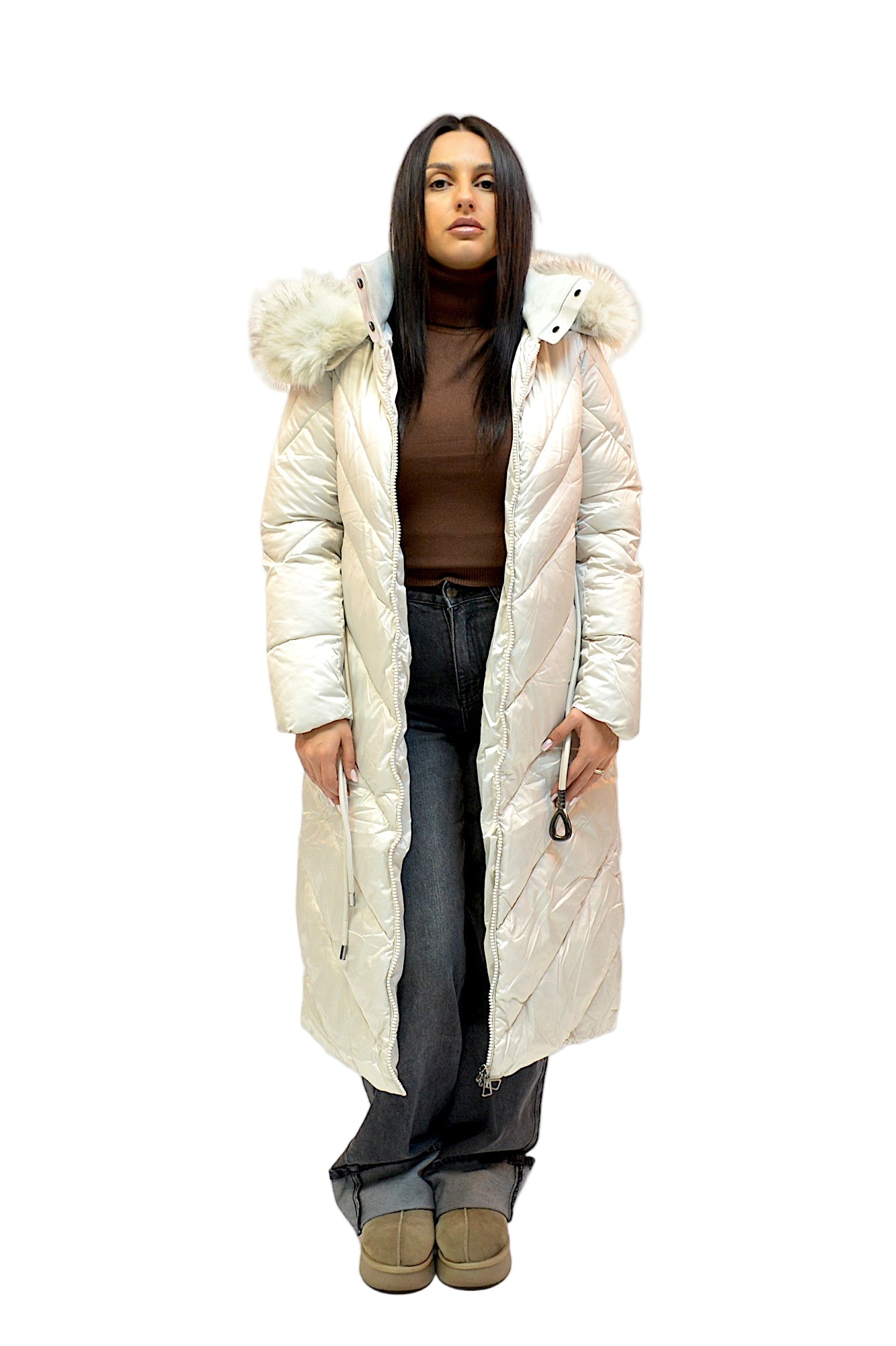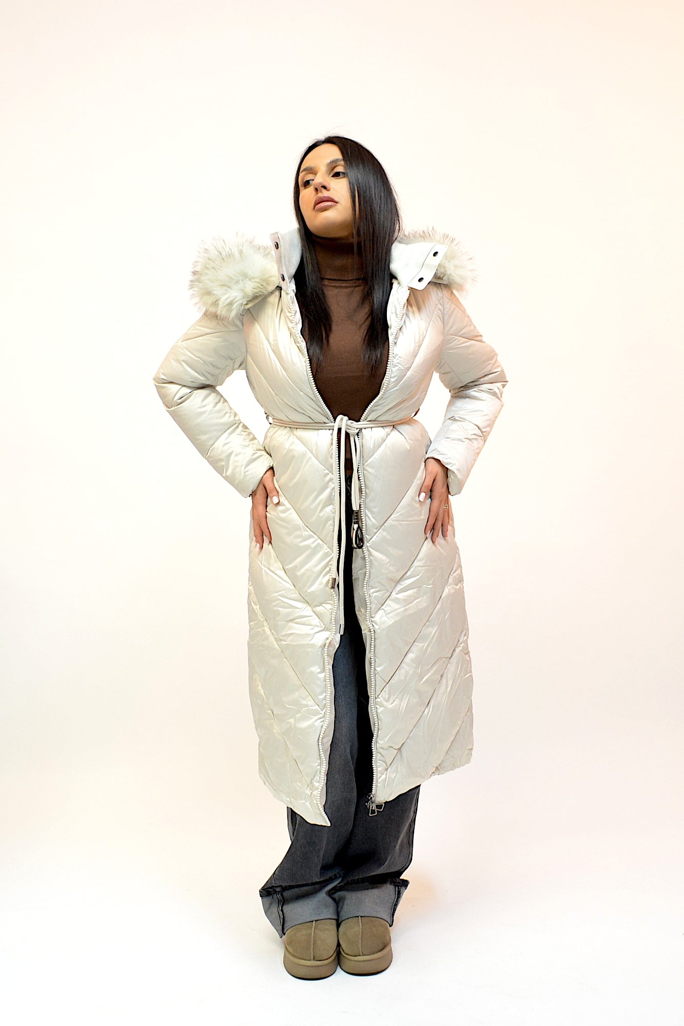 Geaca de iarna cu gluga detasabila si blanita ecologica,sistem de inchidere cu fermoar si cu snur in talie reglabila asa incat sa scoata talia in evidenta,umpluta cu vatelina perfecta pentru zilele friguroase de iarna.