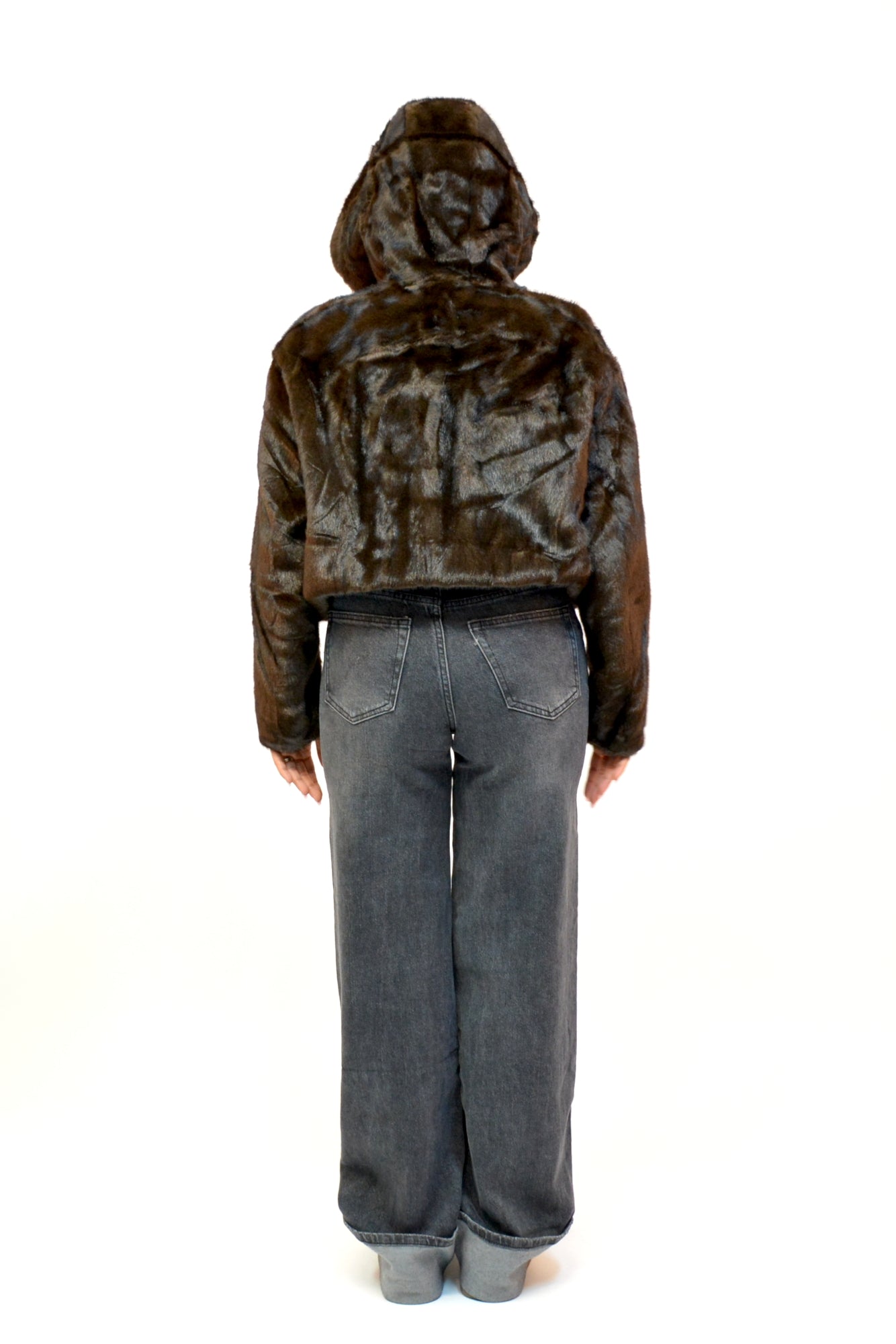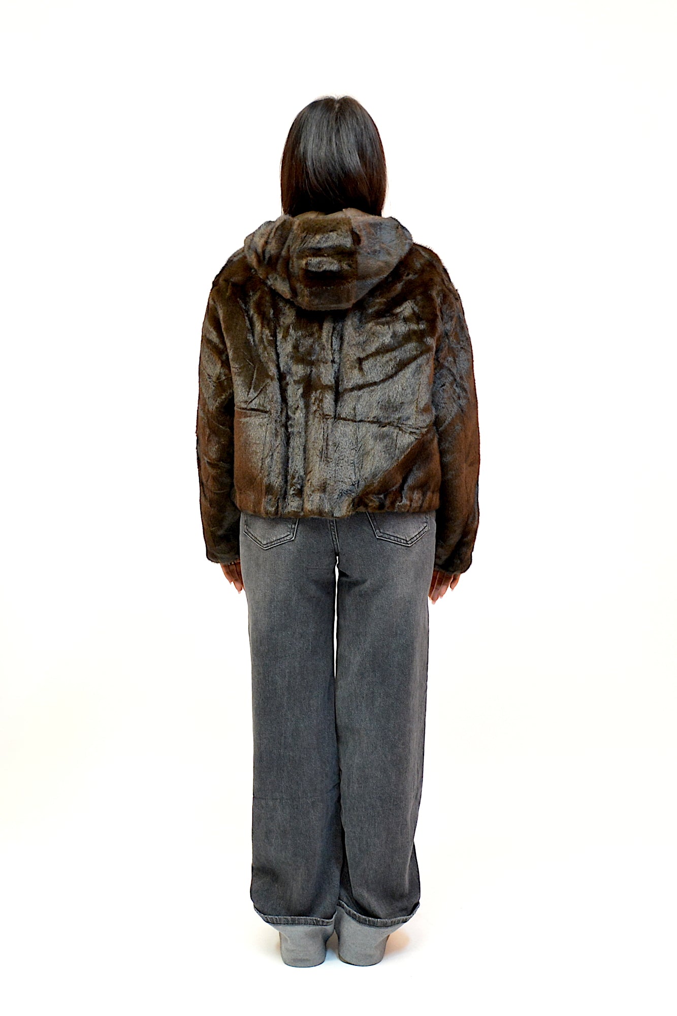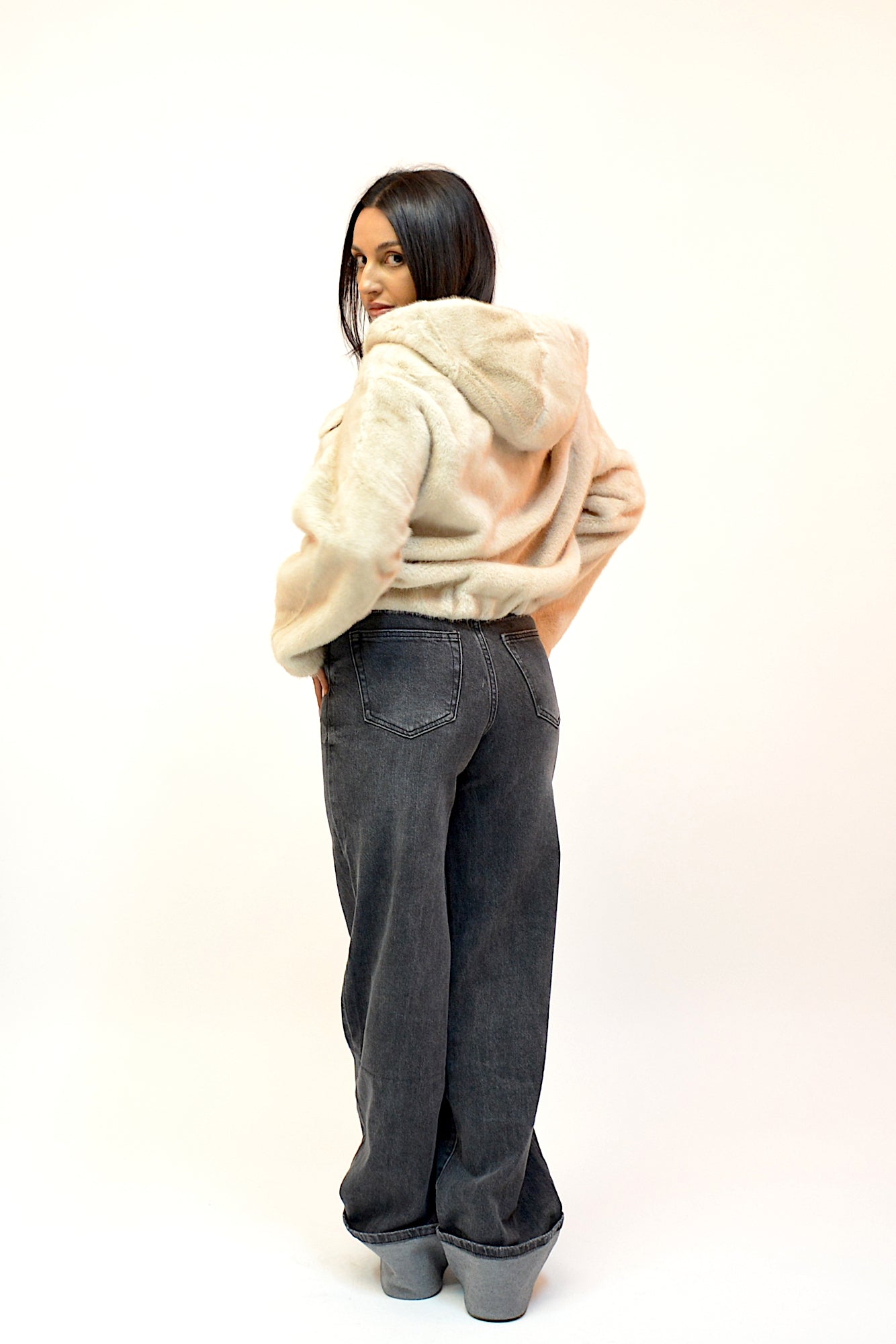 Jacheta din blana ecologica,foarte fina la atingere,buzunare laterale,maneci lungi si gluga ,sistem de inchidere cu fermoar ,practica si extrem de confortabila in sezonul rece