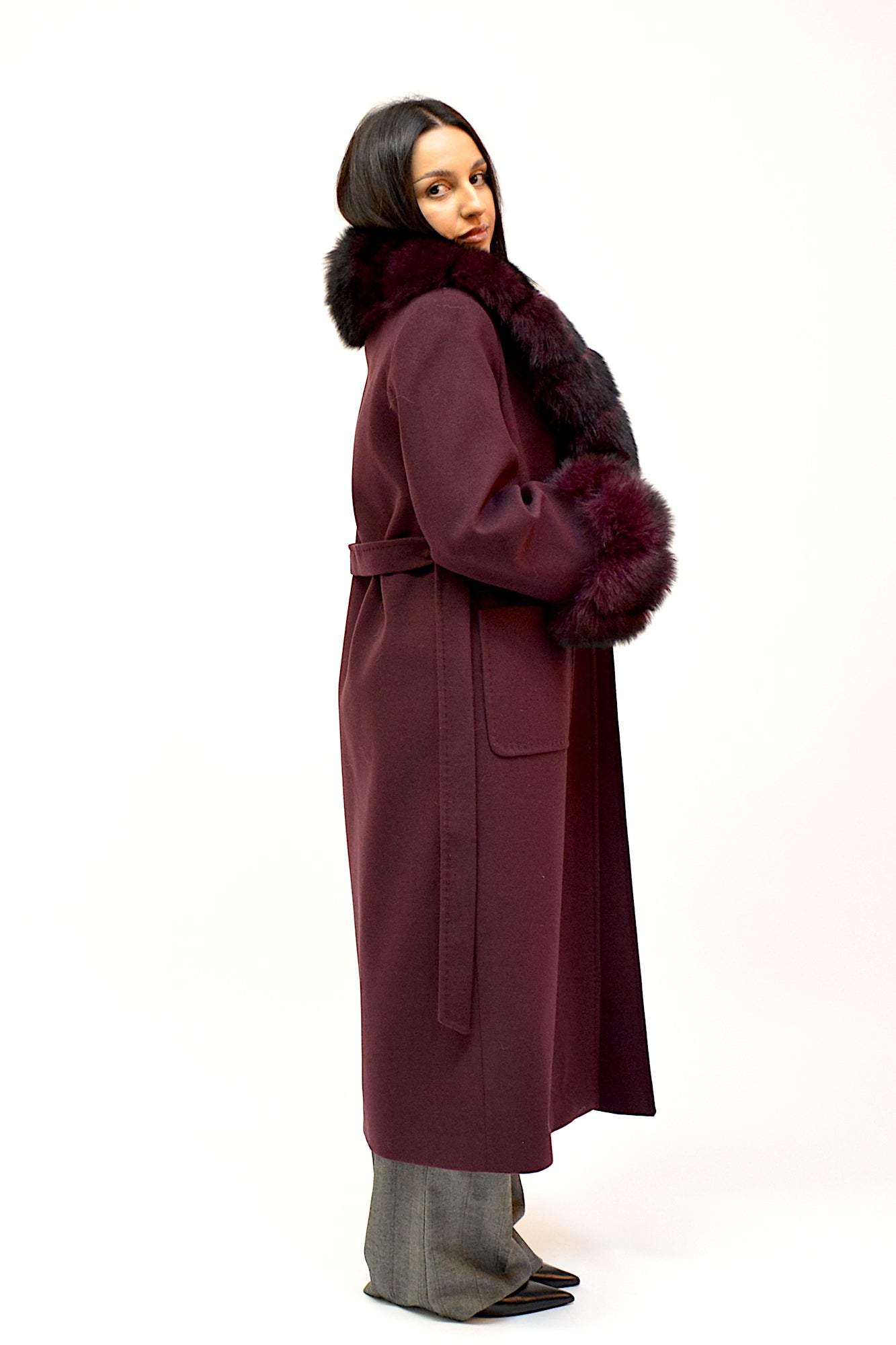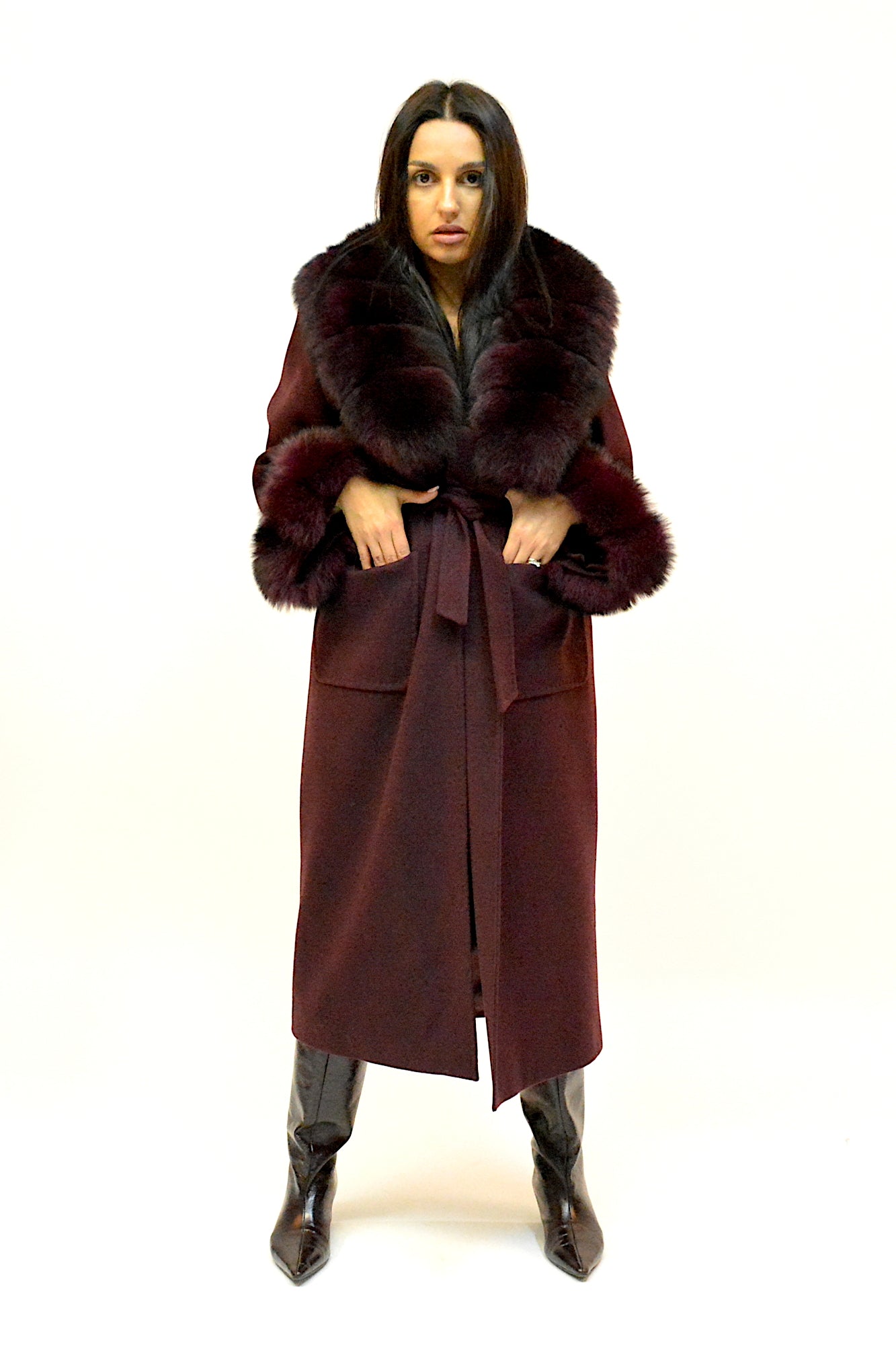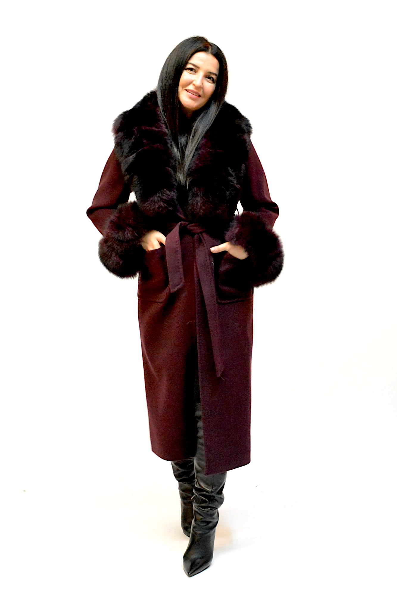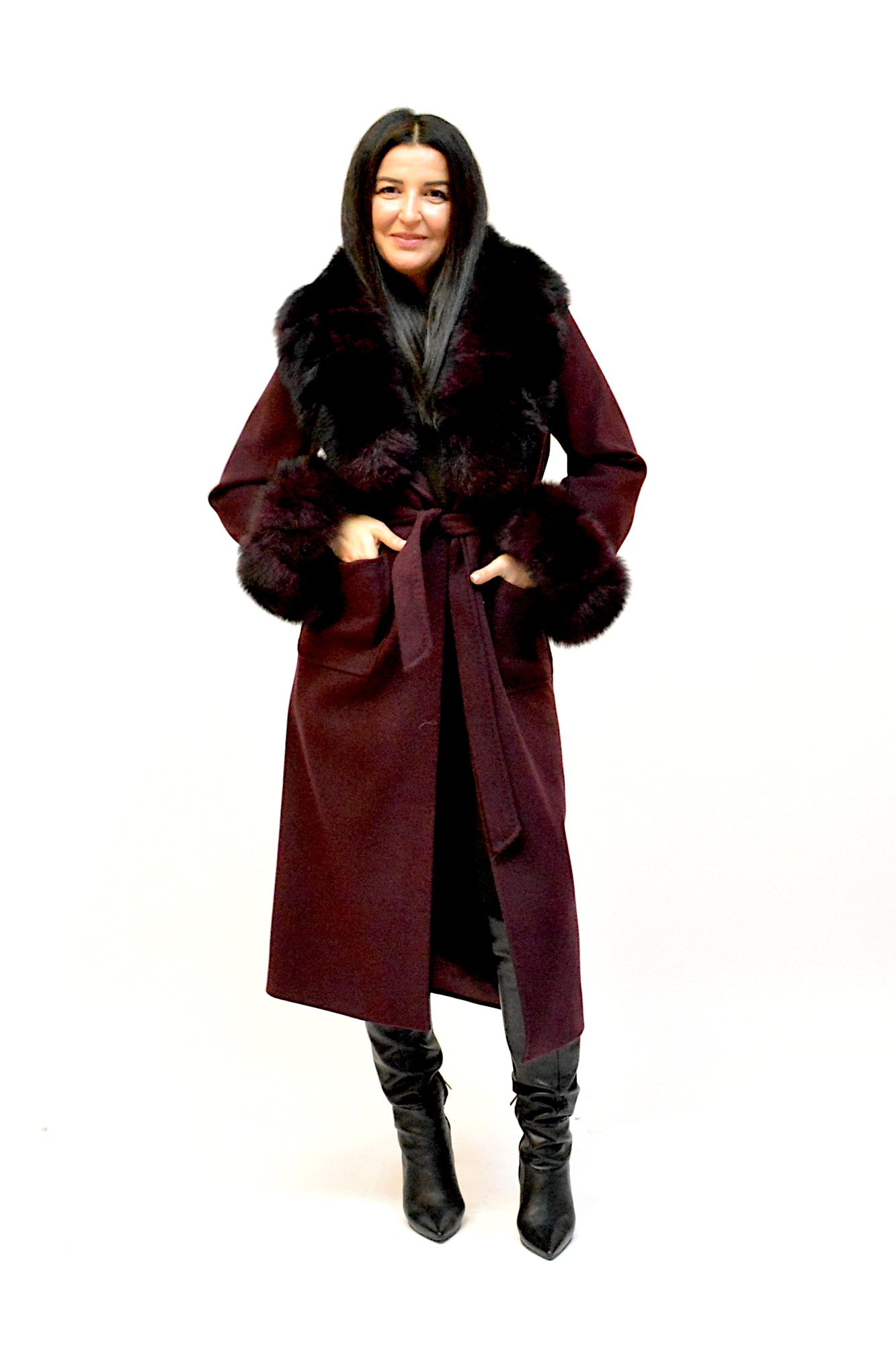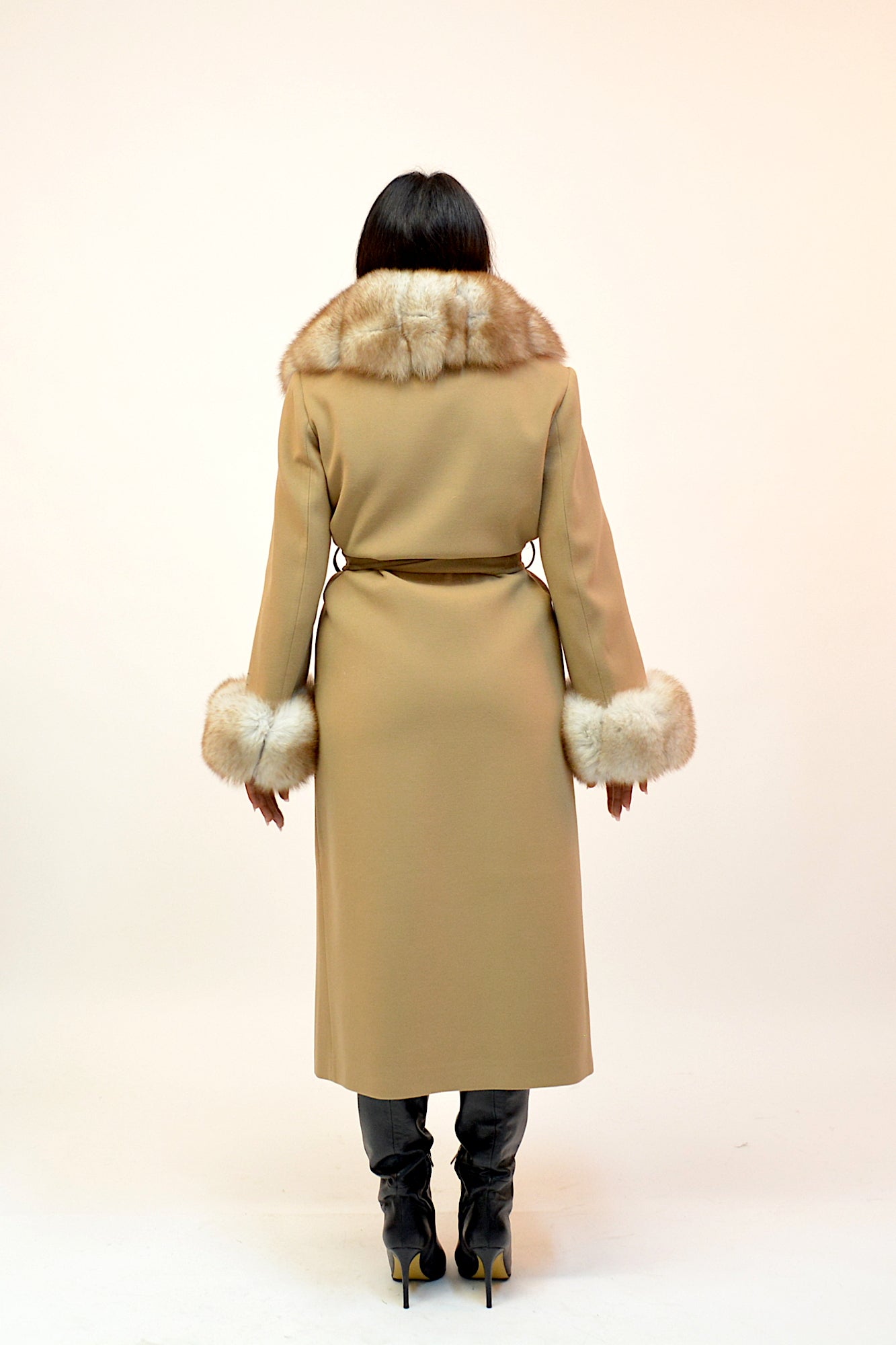 Palton elegant din premium, cu guler amplu și manșete detașabile din blană naturală de vulpe. Croiul lung și designul rafinat oferă un plus de eleganță și versatilitate, ideal pentru ținutele de sezon.